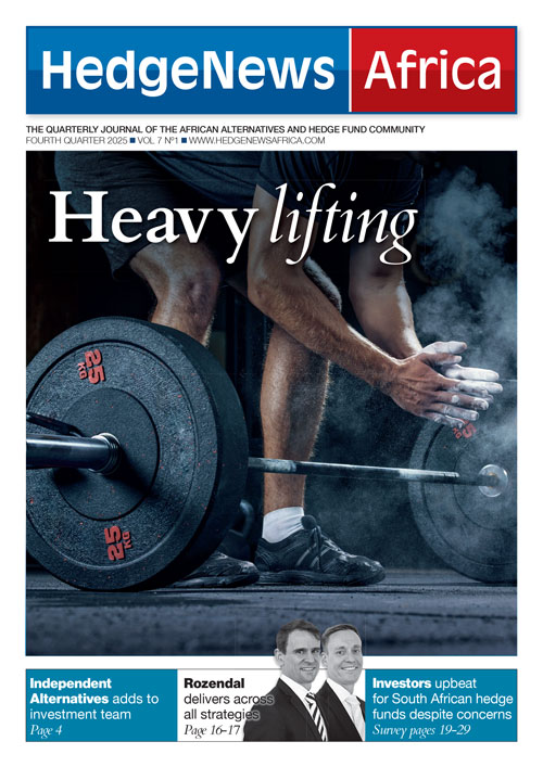 In this edition we talk to Gyongyi King, CIO of Alexander Forbes Investments and carry details of a new launch from ex-Truffle man Jonathan du Toit at Oyster Catcher Investments. We also talk to Abax Investments’ Wallie van der Walt whose market-neutral strategy underscores the benefits that hedge funds can bring to broader portfolios. This edition also contains our important annual investor survey, in which we poll leading allocators to the hedge fund industry in South Africa.